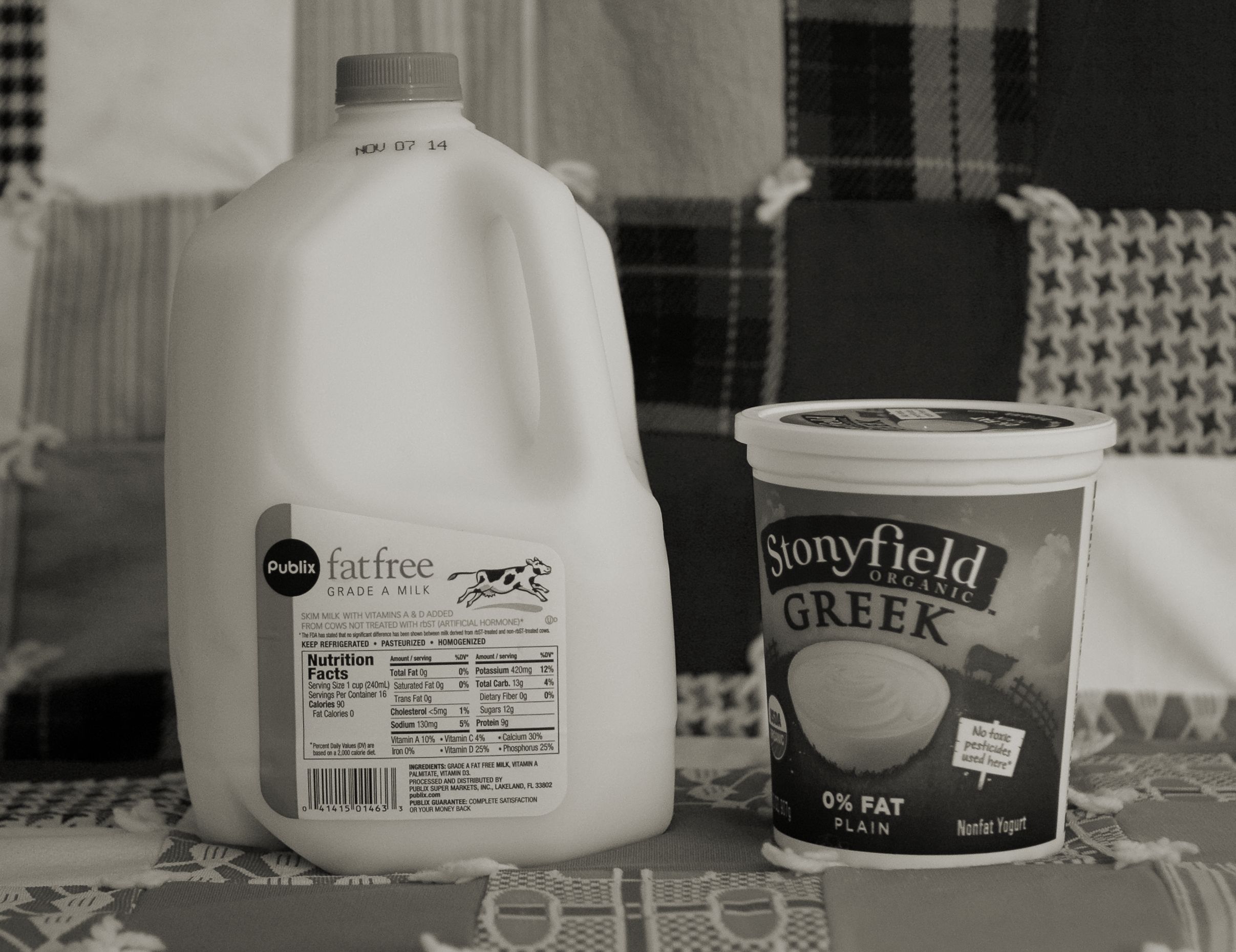 • Gallon of milk (I use non-fat. I find it sets firmer)