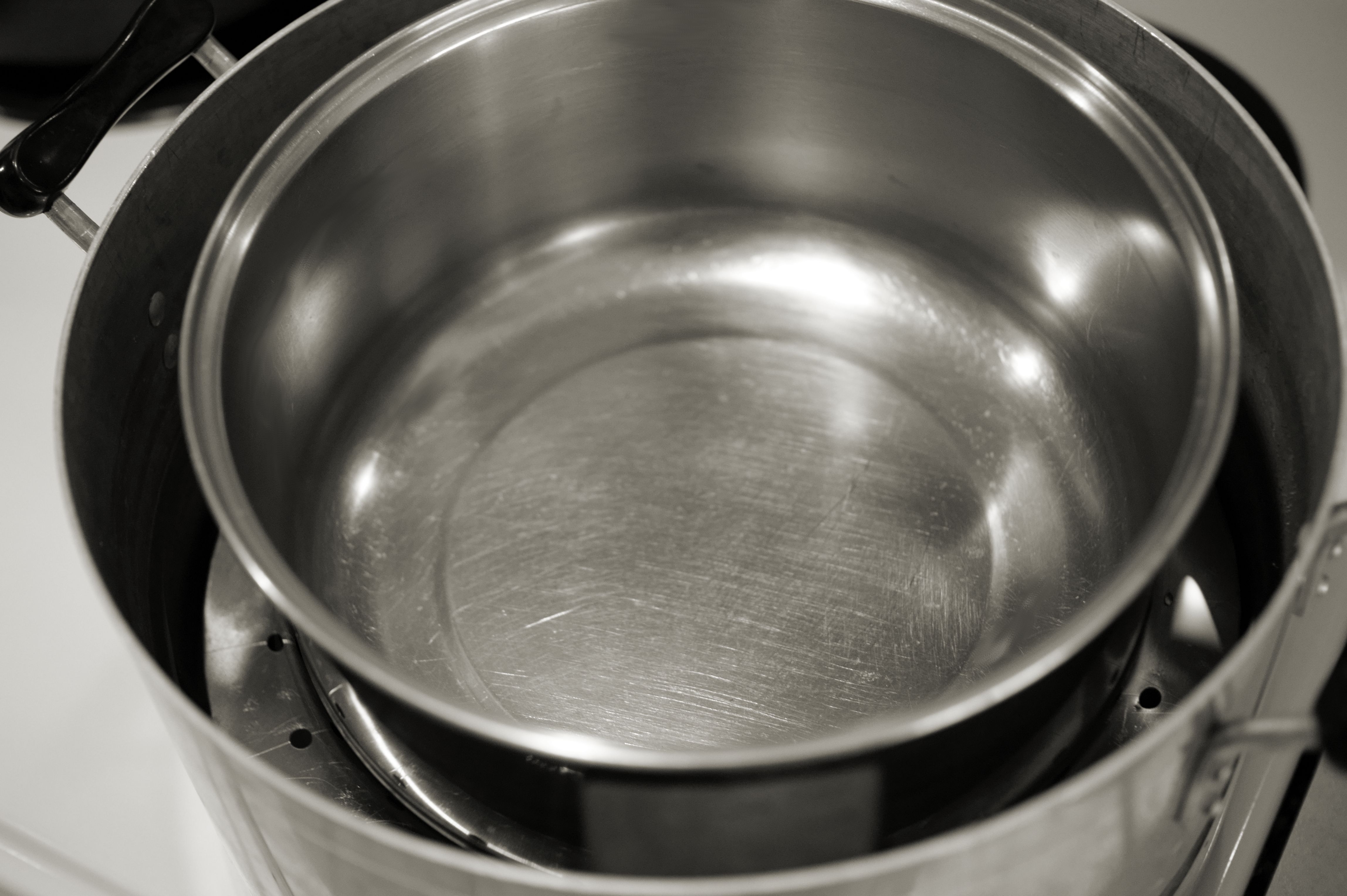 2. Sit the steamer on the stove top and place the smaller pan in the water bath.SONY DSC